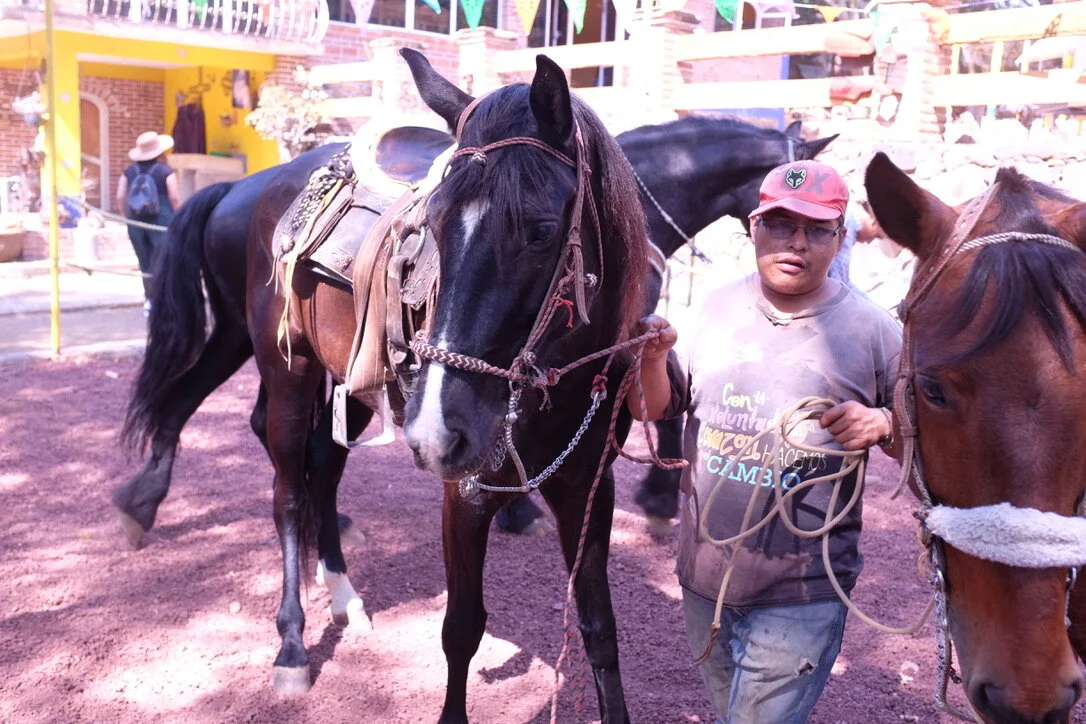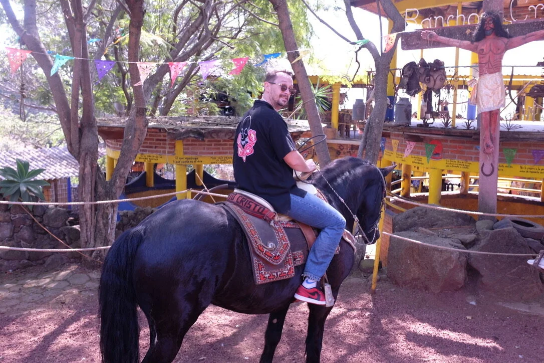 Still, nil desperandum, we booked ourselves a trek and on our second day in the sticks we rolled up to the most Mexican looking ranch you could possibly imagine. Decorated with skulls and Jesus figures, populated with ostriches and pigs. Real caballeros in spurs and Stetsons doing lasso tricks, saddling up horses for us four city-slickers who’d booked for the day.
