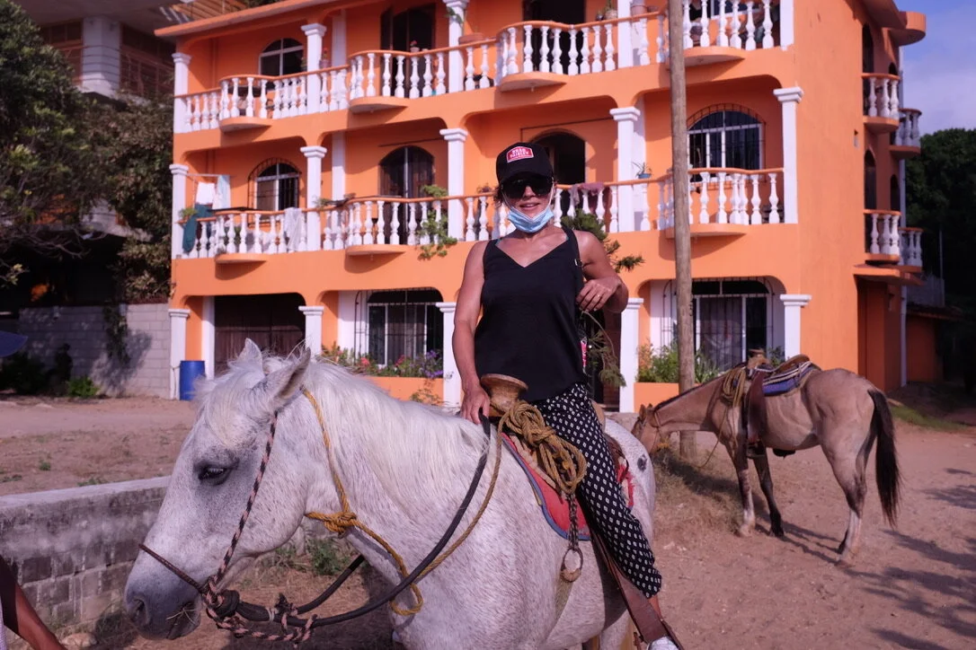 You’d think it was all this youth and nostalgia that made me feel bald, but no. It’s the horses. Inexplicably, Annemarie and I have really gotten into horse riding. This is extraordinary, as six months previous I couldn’t tell a horse from a llama. It comes from increased visits to the countryside where, despite what outdoor enthusiasts will tell you, there’s actually very little to do except look at the scenery. We are city people. Always have been, always will be but with Covid running rampant across the globe, cities are closed. How can you be a city person when there is no city? So we’ve started jumping in the saddle and taking an eyeful of the breath-taking vistas this magnificent country has to offer. Mexico is truly beautiful. From deserts, to mountains, to beaches, to plains, forests of pine and rain, this country has everything. It’s constantly surprising and horseback is such a great way to see it, because you’re sat down. Puerto Escondidio has the longest and one of the most picturesque natural beaches in world. The waves reach twelve feet high, like something out of a surfing video. Galloping down these on horseback is incredible but take a left and you’re in forest covered mountains, striped with run-off rivers, natural hot springs and cenotes. Splashing through all this in a saddle is exhilarating and you feel like you’re in a movie, though more ‘City Slickers’ than ‘The Searchers’ in our case.