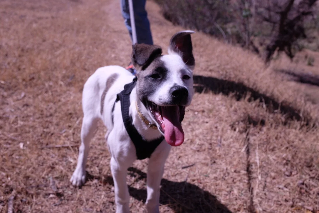 Annemarie was getting tired of my uncontrollable urge to throw sticks, so in the new year we rescued a puppy. This makes it sounds a lot more planned than it was. The truth is, Mrs E is a follower of “dog porn”. Various internet and social media sites that specialise in pictures of dogs. While you’re marvelling at the ugliness of your old friend’s new baby, she’s looking at dogs. Perusing one of these which feature adoptable street dogs in CDMX, she “liked” an Instagram image of a ragsy, white mutt with a dark patch on her eye. A cute puppy. In a “ping” she had a message asking if she lived in a house. She replied, bemused, in the affirmative and just like that, we had a dog.